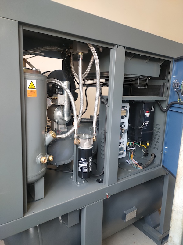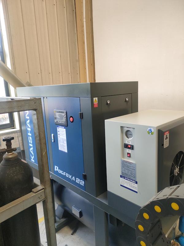 因為客戶現(xiàn)場車間用氣是8公斤,有單獨一臺變頻開山空壓機(jī)供氣,考慮到萬一這臺老設(shè)備出故障耽誤整個生產(chǎn),所以客戶在選型上特別選了大一號的,與車間管道連接處配置減壓閥,這樣這臺激光切割螺桿開山空壓機(jī)給激光供氣同時,也可以兼顧車間的普通用氣,一舉兩得,客戶表示滿意。且表示會把開山空壓機(jī)助力節(jié)能減排的情況在集團(tuán)下面其他子公司做一個推廣。