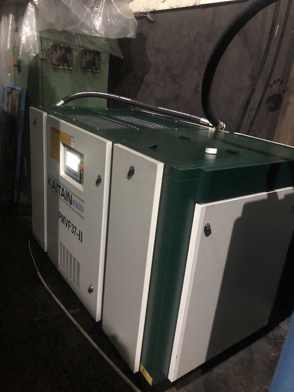 現(xiàn)在的情況是,一臺(tái)滿(mǎn)負(fù)荷,開(kāi)小的又不夠,產(chǎn)能又要擴(kuò)大。決定要增加一臺(tái)空壓機(jī),比較了好多品牌之后選擇了我們杭州開(kāi)山空壓機(jī)銷(xiāo)售服務(wù)商。今天交付使用。